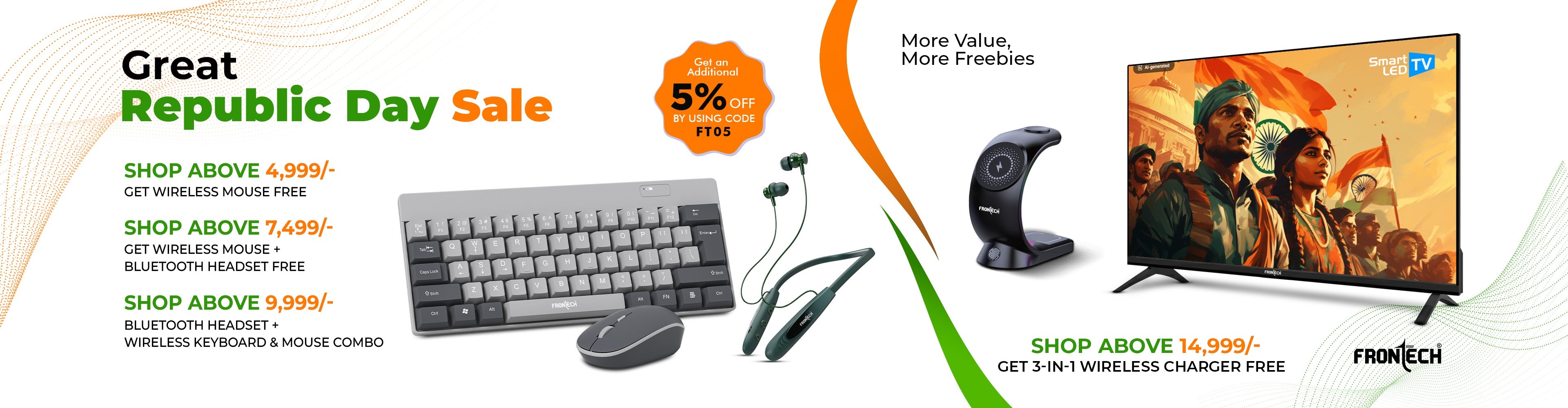 Frontech Wireless Keyboard & Mouse Combo|104 Key Layout|2.4Ghz|1200 DPI|3 button wireless mouse|1 Year Warranty