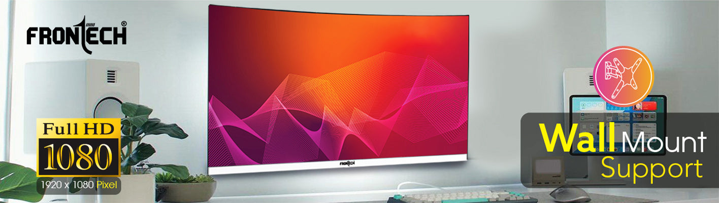 Frontech 24 inch Curved LED Monitor | 100Hz | 1920 x 1080 | Wall Mountable | Frameless | HDMI & VGA | 5ms Response Time | Ultima Series | 3 Years Warranty