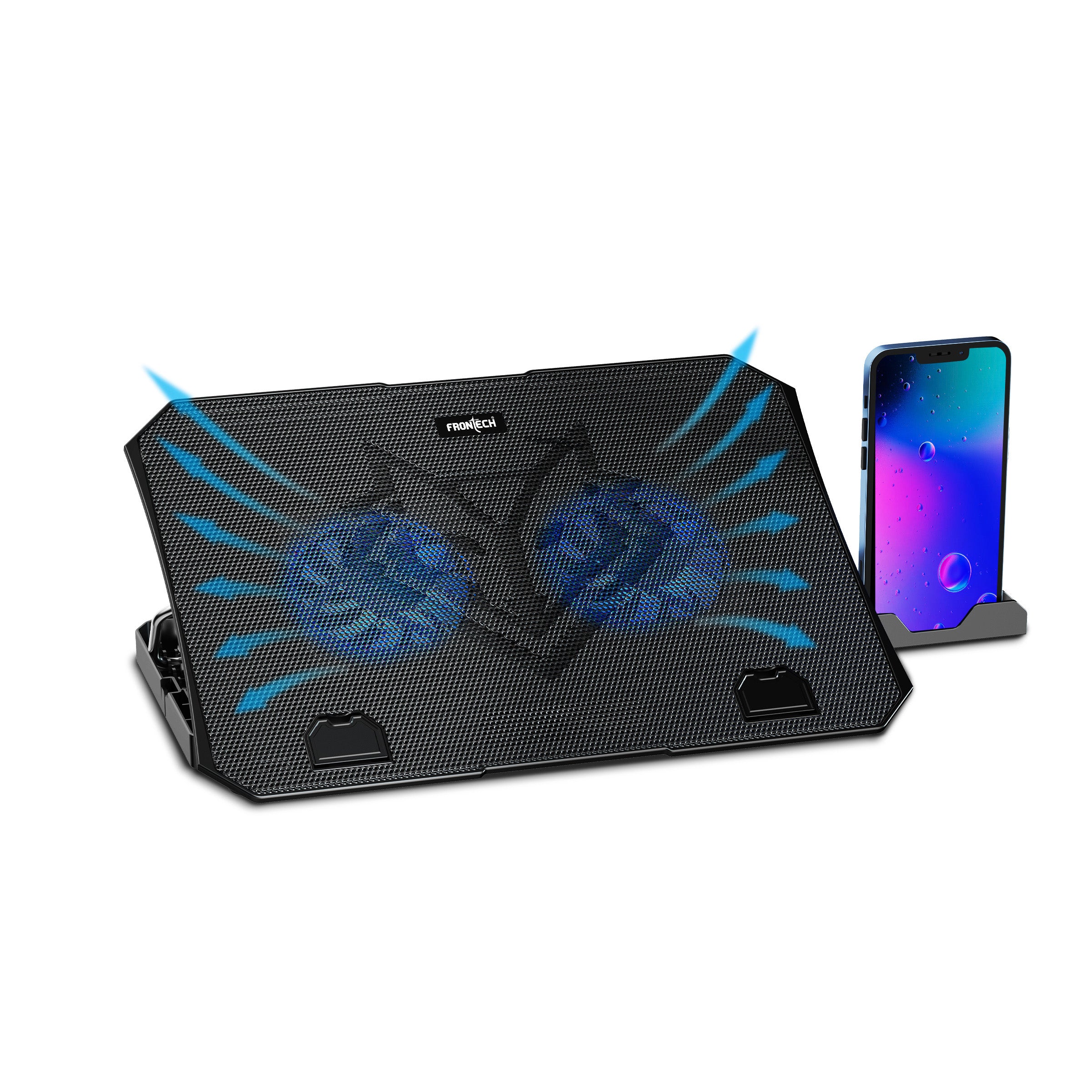 Frontech Laptop Cooling Pad | 2x125mm LED Fans | 5-Level Adjustable Height | Built-in Mobile Stand | For Laptops up to 15.6" (CP-0016)