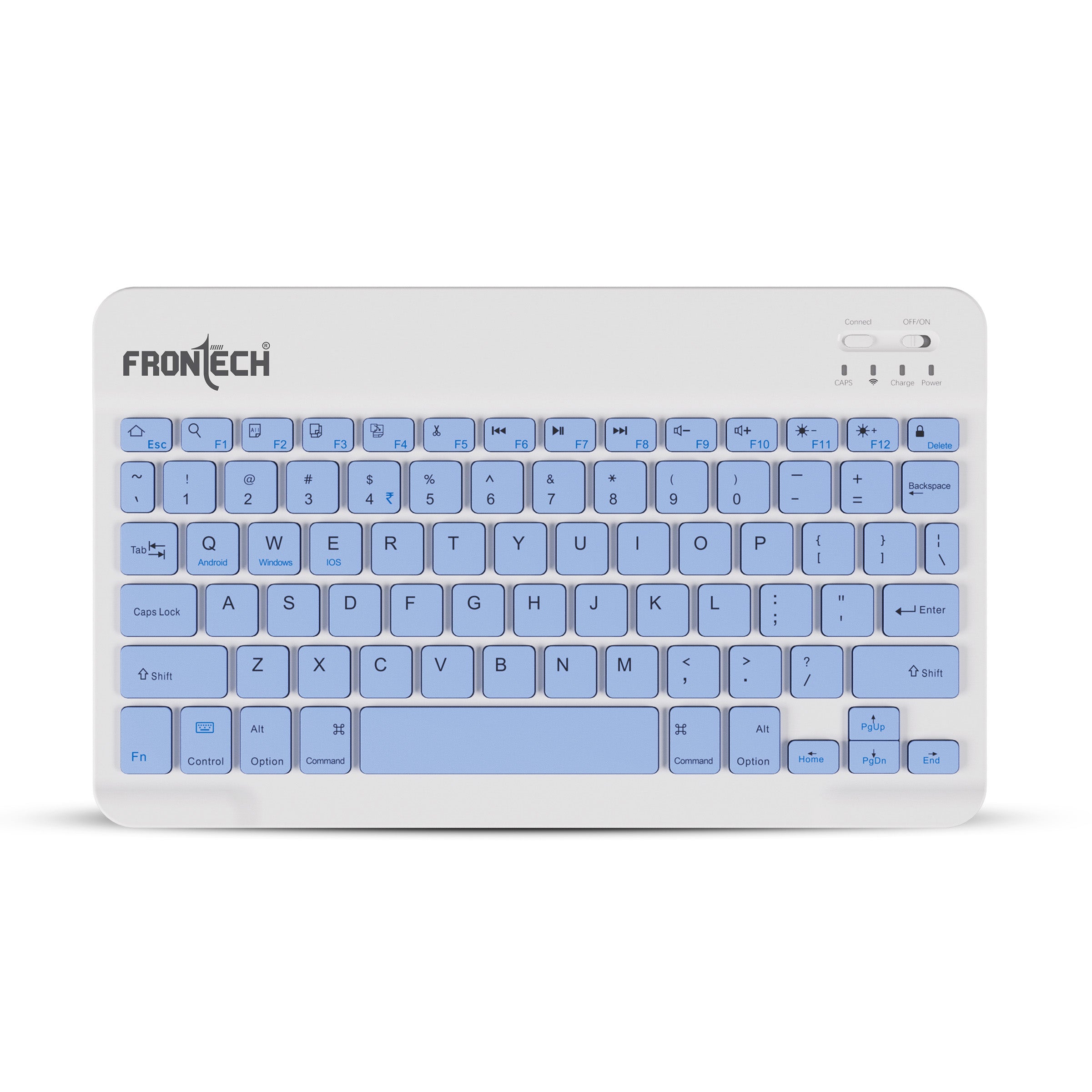 Frontech Wireless Mini Keyboard | BT Multi-Device | 78 Keys with Functional Hot Keys | Silent Scissor Switch | 120mAh Rechargeable battery | Android, Windows & iOS | 1 Year Warranty (FT-1603ABLU)