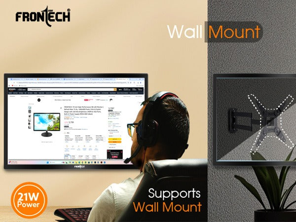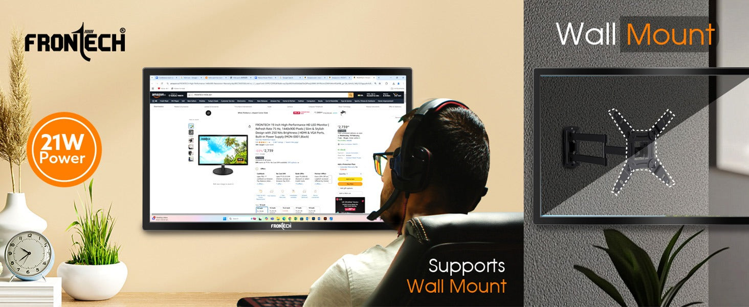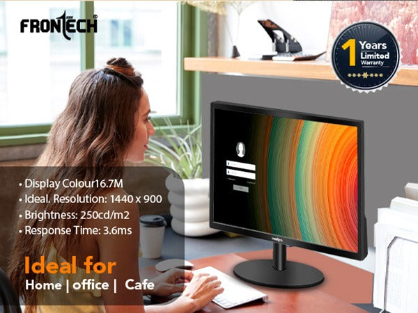 Frontech 19 inch LED Monitor|60Hz|1440 x 900|Wall Mountable|HDMI & VGA |2ms Response Time |Built-in Power Supply |1 Year Warranty